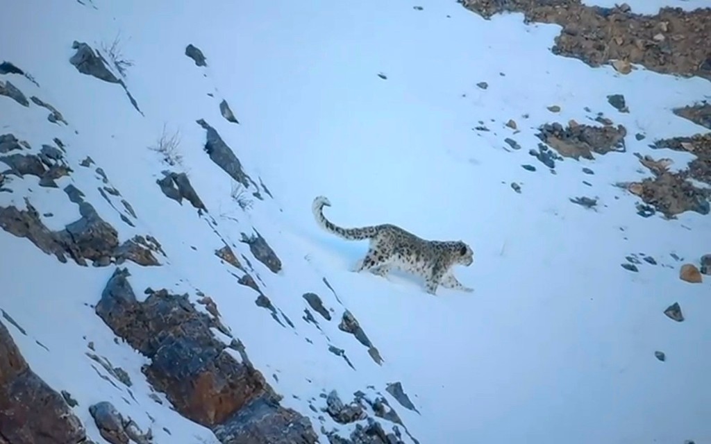 Like a shadow, he made a sudden dash across the deep valley — a fleeting, majestic moment that left us in awe. The snow leopard had shown himself, and just as quickly, disappeared back into the wild.